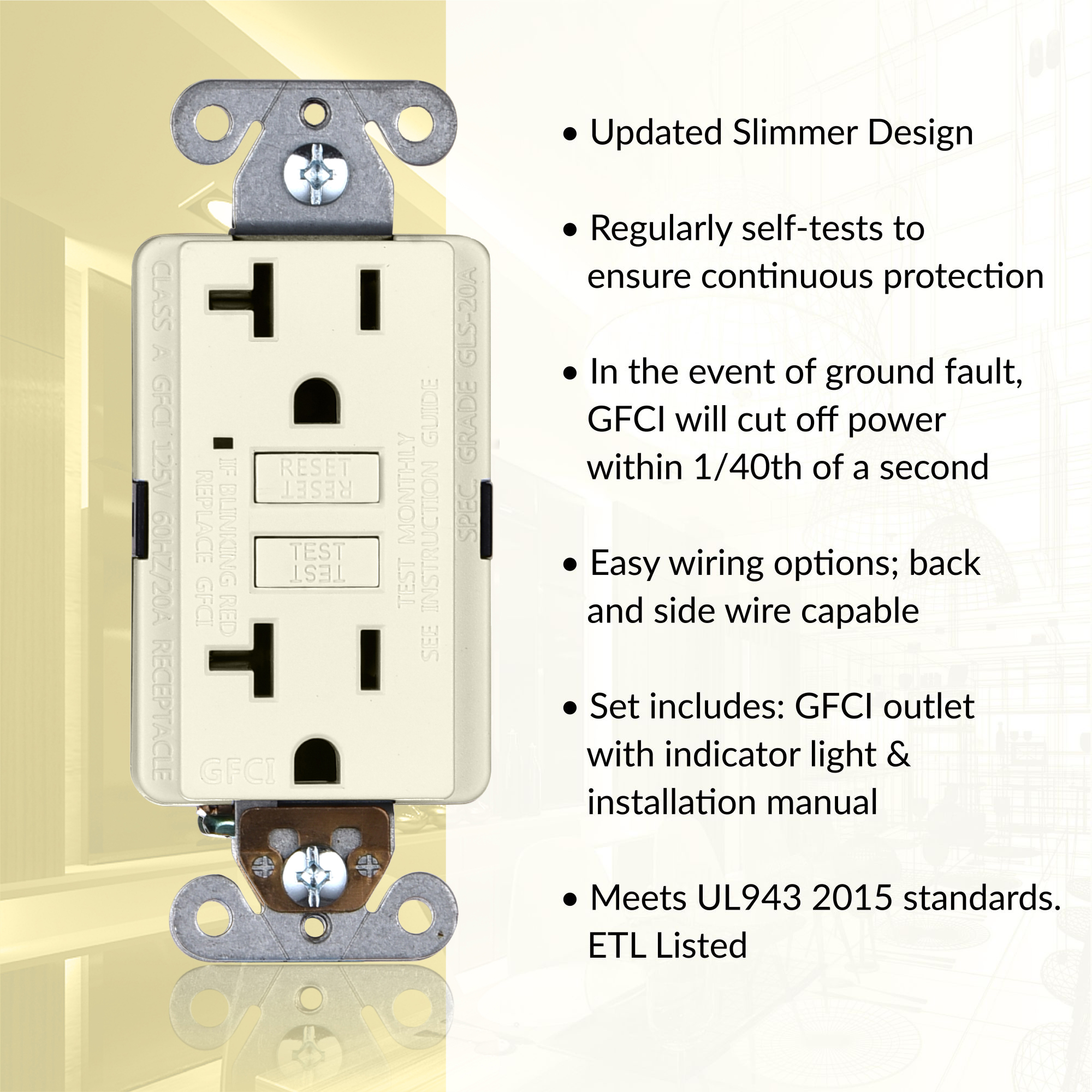 Faith 20a Gfci Outlets Slim Gfi Receptacles Light Almond 3 Pack Walmart Com